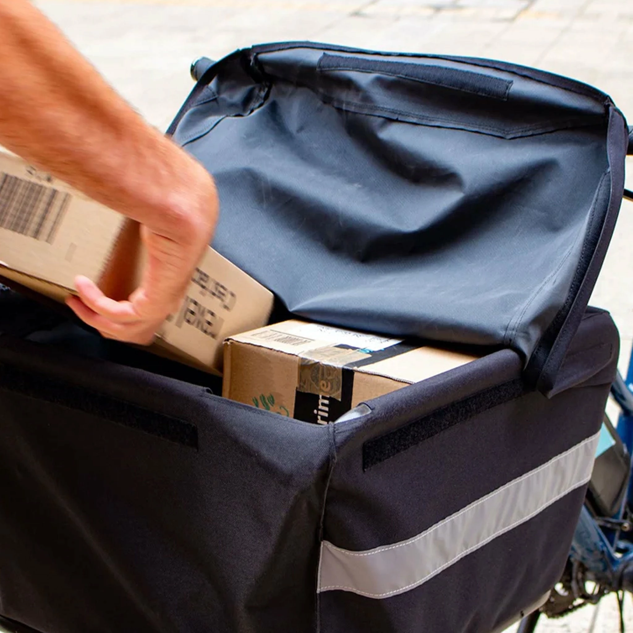 Le grand sac souple Soft Bag s’installe directement sur la fourche cargo JokerBike, offrant un espace de rangement étanche et efficace pour vos trajets à vélo. Le Soft Bag peut, en effet, servir à la livraison en cargo, au vélotaf, au transport de lourdes charges ou encore à transporter votre chien partout avec vous. Les larges bandes réfléchissantes sur les côtés apportent de la visibilité par faible luminosité.
