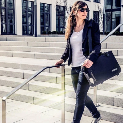 La sacoche de vélo Office Bag de Ortlieb est intelligemment pensée pour les cyclistes urbains qui se servent du vélo pour aller travailler ou pour se rendre en cours, au collège ou à la fac. Utilisé comme un cartable pour les uns ou attaché case pour les autres, la sacoche noire est fonctionnelle, étanche et garantie haute visibilité. Ses grandes dimensions permettent d’y ranger deux grands classeurs (DIN A4 Taille L), une tablette, des stylos, carnets, clés, etc ; le tout, de façon très organisée grâce au cloisonnement intérieur avec poches appliquées. Ainsi, pas de crainte d’arriver au travail ou à l’école avec les papiers volants dans la sacoche.