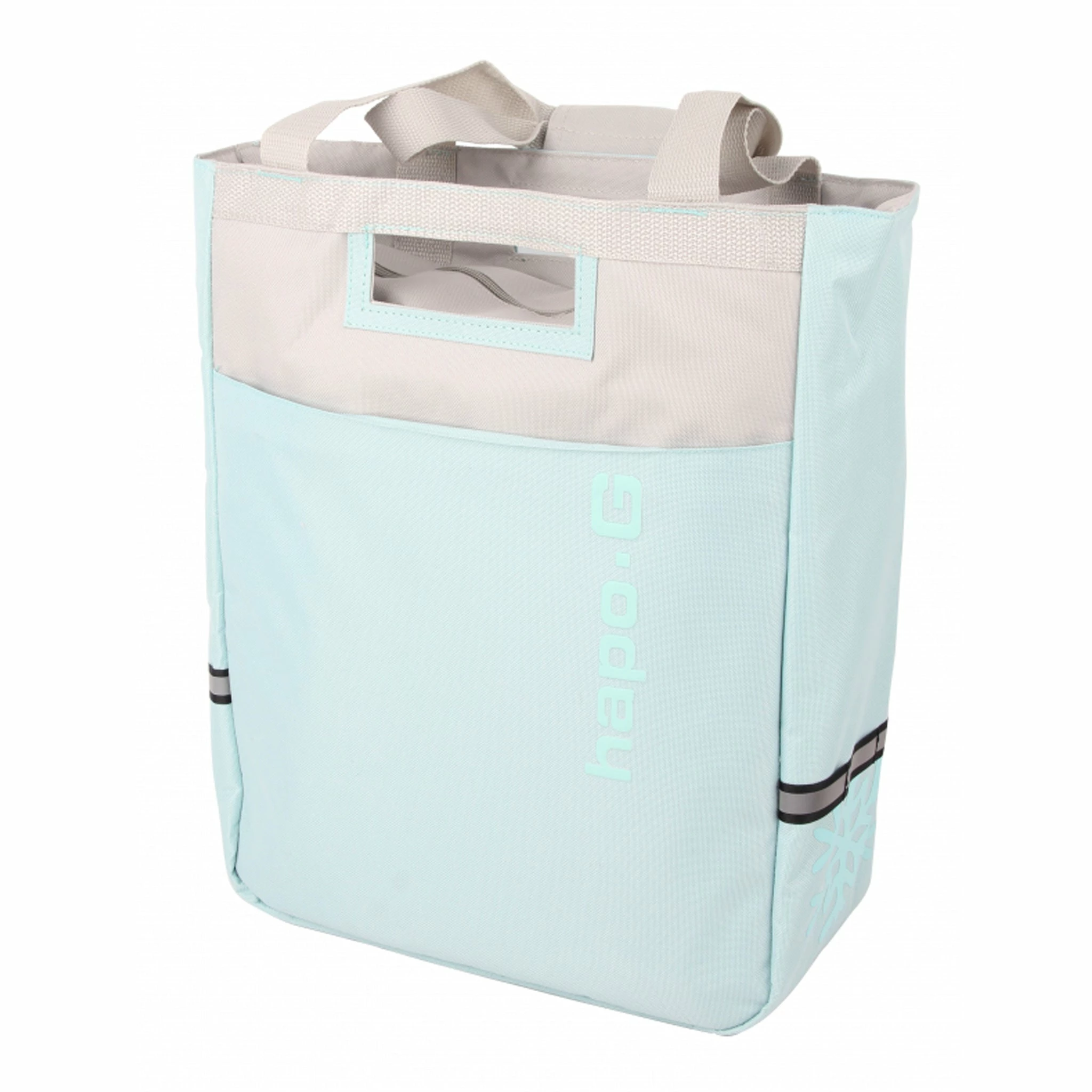 La sacoche isotherme de Hapo-G est une sacoche 2 en 1 qui s’utilise aussi bien à pieds qu’à vélo. L’anse ainsi que les poignées permettent de la transporter en mode cabas ; et les crochets à l’arrière se cachent par une poche zippée. Pour une utilisation sur le vélo, les crochets permettent une fixation amovible simple et rapide. Des adaptateurs sont livrés avec la sacoche pour une compatibilité avec des tubes de porte-bagages entre 8 mm et 15 mm.